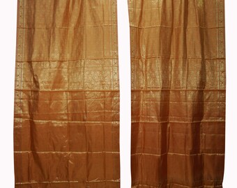 2 Rust Golden Curtains Rod Pocket Sari Curtains Panels Boho Indi Gypsy Home Decor Interiors 96 inch