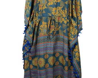 Bohemian Women's GREEN Floral Caftan Kimono Abaya Housedress Cover Up Lounger Wear Kaftan