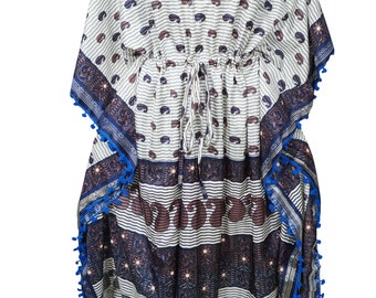 Bohemian Women's Maxi Long Caftan Printed Pom Pom Tassel V Neck Silk Kaftan Dress 4X