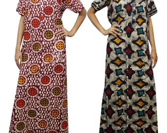 2 pc Women's Black,Maroon Nightwear Maxi Dress Printed Cotton Bohochic Nightgown Caftan L
