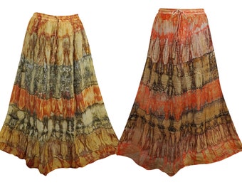 2 Pc Womens Long Skirt Printed Crinkle Cotton Flared Boho Chic Gypsy Flare Beach Skirts Large