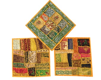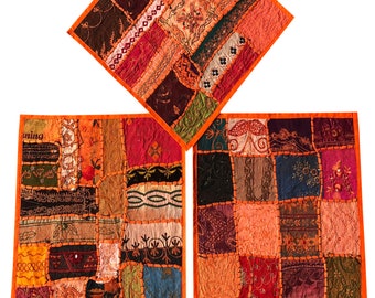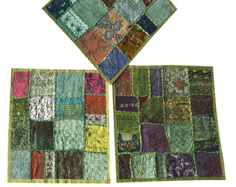 3 Patchwork Indian Handmade Vintage Embroidered Decorative Cushion Cover 16x16