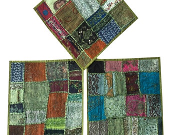 Set of 3 Designer Throw Pillow Sham Vintage Patchwork Green Cushion Covers 16 x 16