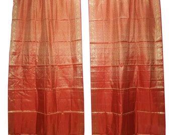 2 Red Sari Curtains Rod Pocket Panels Boho Indi Gypsy Home Decor Interiors 96 inch