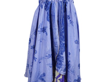 Bohemian Women Magic Wrap Vintage Silk Sari Skirt 2 Layer Printed Multi Convertible Sarong Wrap Around Skirts One Size