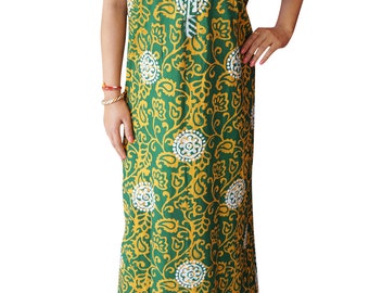 Bohemian Womens Maxi Cotton Nightwear Green Printed Short Sleeves Sleepwear Nightgown Dress L