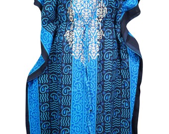 Womens Caftan Dress Beach Kaftan Blue Kimono Boho Body Cover Up Bohemian Maxi Dresses Lounge Wear One Size