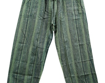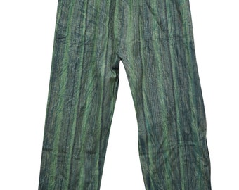Cotton Green Stripe hippie Chic yoga pants for women, Comfortable Elastic Waist wide leg trousers S/M/L