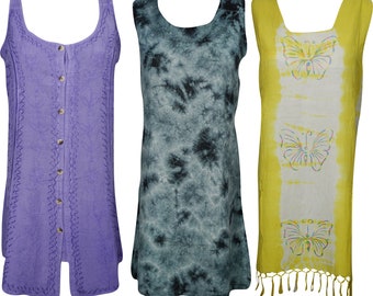 2 pc Hippie Chic Womens Tie Dye Tank Dress Loose Fit and Flare Swing Sleeveless Boho Sexy Summer Fashion Dresses M
