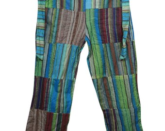 Ethnic Stripes Unisex Harem Pants Striped Pockets Loose Cotton Yoga Meditation Boho Hippy Pajama