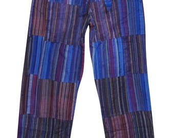 Women's Yoga Pant Boho Gypsy chic Handloom Cotton High Waist Striped Side Pocket Pajamas/Trouser S/M