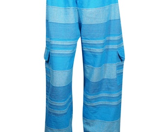 Women's Yoga Pants Blue Trousers Pants Handloom Cotton Summer Bohemian Pajama S/M