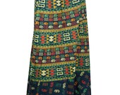 Womens Maxi Skirt, Strapless Dress Green Yellow Floral Printed Recycled Sari Summer Bohemian Skirt S/M