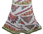 Women Maxi Skirt Dress, Summer Beige Floral Printed, 2 in 1 Recycled Sari Bohemian Beach Skirts S/M
